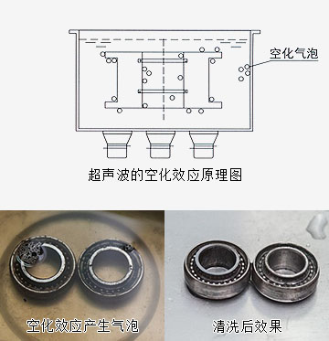 超聲清洗基于超聲空化的作用,當超聲波的形成氣泡后突然破裂(閉合)的瞬間能產(chǎn)生超過1000個大氣壓力,這種連續(xù)不斷產(chǎn)生的瞬間高壓強烈沖擊物件表面,使物體表面及縫隙中的污垢迅速剝落,從而達到物體表面清潔凈化的目的。